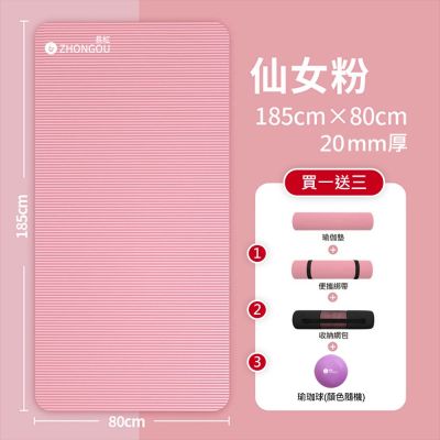 【NBR加厚款 買1送3】20MM厚 200X80CM 瑜珈墊/防滑墊/地墊 贈綁帶、背袋、瑜珈球或拉力繩 SGS認證 XFE-YG22$70489折