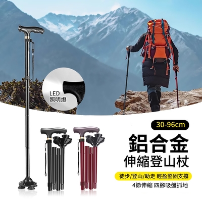 ANTIAN 鋁合金多功能三節伸縮折疊老人助行防滑拐杖 戶外輕便帶燈四腳登山杖 老年人手持防摔手杖拐棍$50189折