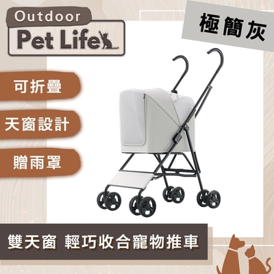 Pet Life 戶外系列 前開雙天窗 輕巧收合寵物推車/贈雨罩 極簡灰$3,81884折