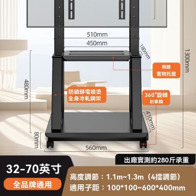 電視機支架 32-70英寸帶輪推車電視架 可移動電視支架 一體式掛機落地電視支架 280斤承重