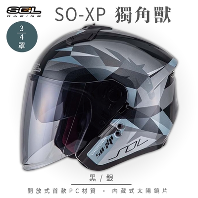 【SOL】SO-XP 獨角獸 黑/銀 3/4罩(開放式安全帽│機車│內襯│半罩│女性適用│內藏墨鏡│GOGORO)$2,28189折