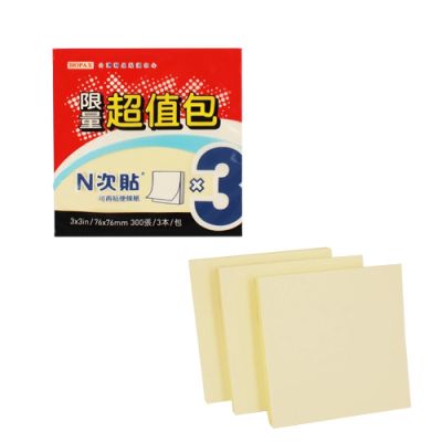 【N次貼】超值包-可再貼便條紙 76x76mm 黃、三色 300張/3本 61003、61004