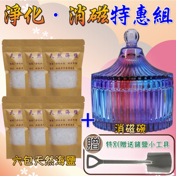 【吉祥開運坊】鎮宅除晦【天然粗鹽 淨化消磁/水晶/玉器 去除不好氣場 附6包海鹽 消磁碗 湯匙】