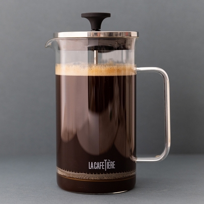 《La Cafetiere》玻璃法式濾壓壺-簡約銀1L-- 泡茶器 冷泡壺 沖茶器 法壓壺 咖啡壺 奶泡杯