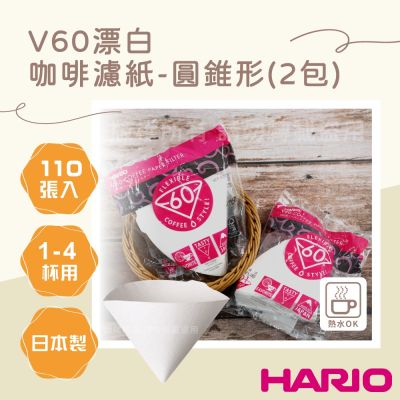【HARIO】V60_日本酵素漂白咖啡濾紙-圓錐形-110張*2包-1~4杯用-日本製(VCF-02-110W*2)$220