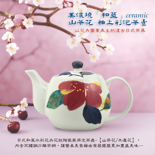商店【堯峰陶瓷】日本進口陶瓷美濃燒-釉上彩山茶花/木蓮花泡茶壺(含分離茶網) 單入