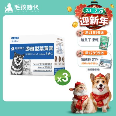 【毛孩時代】8合1游離型葉黃素x3盒(狗狗、貓咪護眼專用、市面專利成分)★獸醫推薦