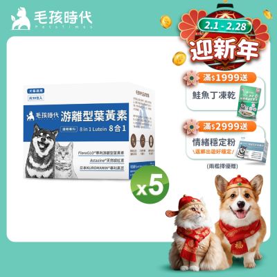 【毛孩時代】8合1游離型葉黃素x5盒(狗狗、貓咪護眼專用、市面專利成分)★獸醫推薦