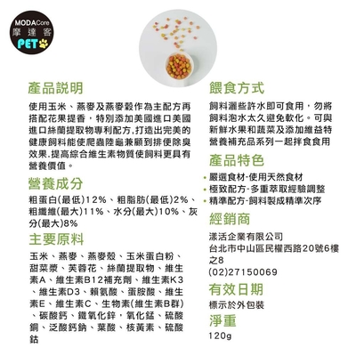 【摩達客特寵系列】維益特-陸龜水果配方彩色飼料120g