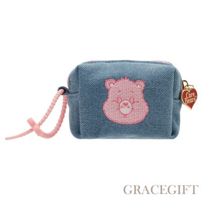 - 【Grace Gift】Care Bears-樂觀小熊電繡格紋吊飾零錢包 深藍$580挑戰低價
