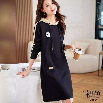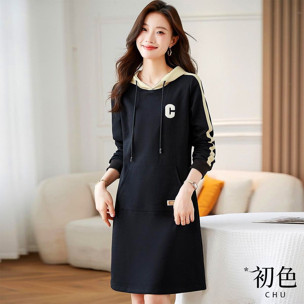 初色 休閒風撞色字母口袋抽繩連帽長袖中長裙連衣裙連身洋裝-黑色-15402(M-2XL可選) product thumbnail 1初色 休閒風撞色字母口袋抽繩連帽長袖中長裙連衣裙連身洋裝-黑色-15402(M-2XL可選) product thumbnail 2初色 休閒風撞色字母口袋抽繩連帽長袖中長裙連衣裙連身洋裝-黑色-15402(M-2XL可選) product thumbnail 3