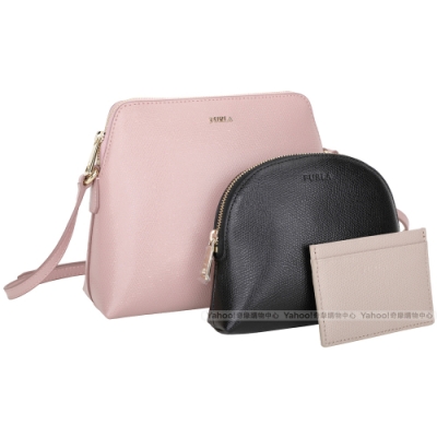 FURLA Boheme 附化妝包x卡片夾牛皮斜背包(粉黑色)