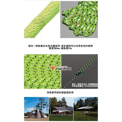 韓國SELPA 6mm反光營繩50米野營繩 露營繩 帳篷繩 product image 1