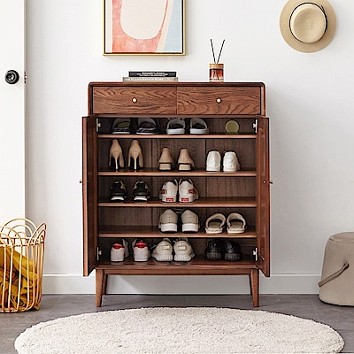 hoi! 源氏木語布拉格胡桃色橡木三門雙抽鞋櫃 H84L03 (H014309461)