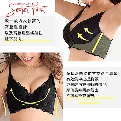 aimerfeel [單品內衣] 副乳 舒適胸罩 蕾絲交叉包覆 高脇邊內衣 -603713-PU