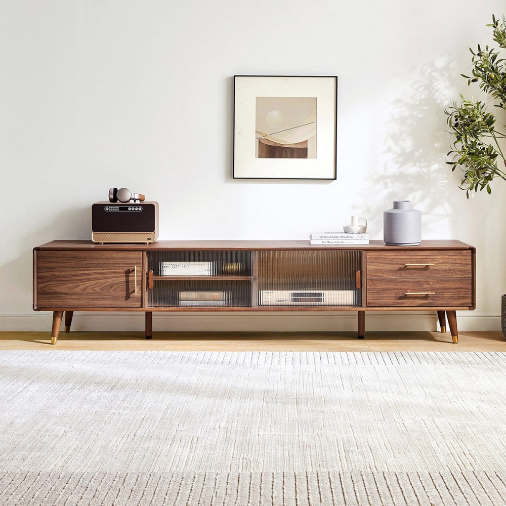 林氏木業北歐金屬裝飾玻璃滑門2M電視櫃 JU1M-胡桃色 (H014323221) product image 1