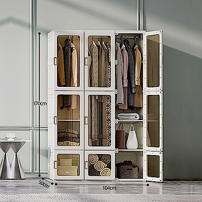 【ANTBOX 螞蟻盒子】免安裝折疊式衣櫃15格3桿(茶色款) (H014333434)