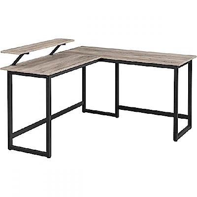 VASAGLE 工業風附螢幕支架L型書桌/電腦桌1.4M-格雷灰 LWD056B02 (H014335028)
