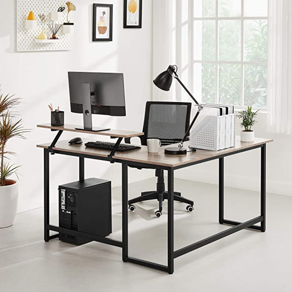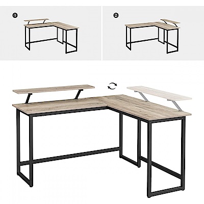 VASAGLE 工業風附螢幕支架L型書桌/電腦桌1.4M-格雷灰 LWD056B02 (H014335028) product image 1