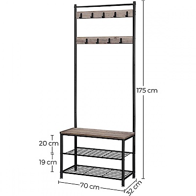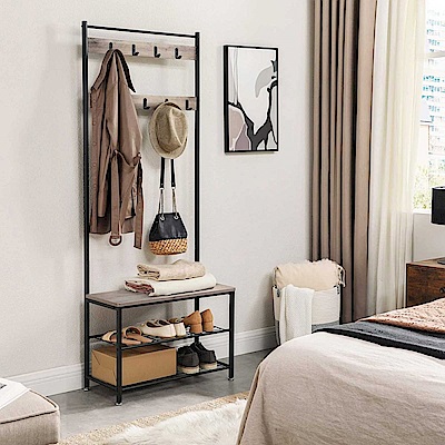 VASAGLE 工業風多功能玄關衣帽鞋架0.7M-格雷灰 HSR41MB (H014335063)