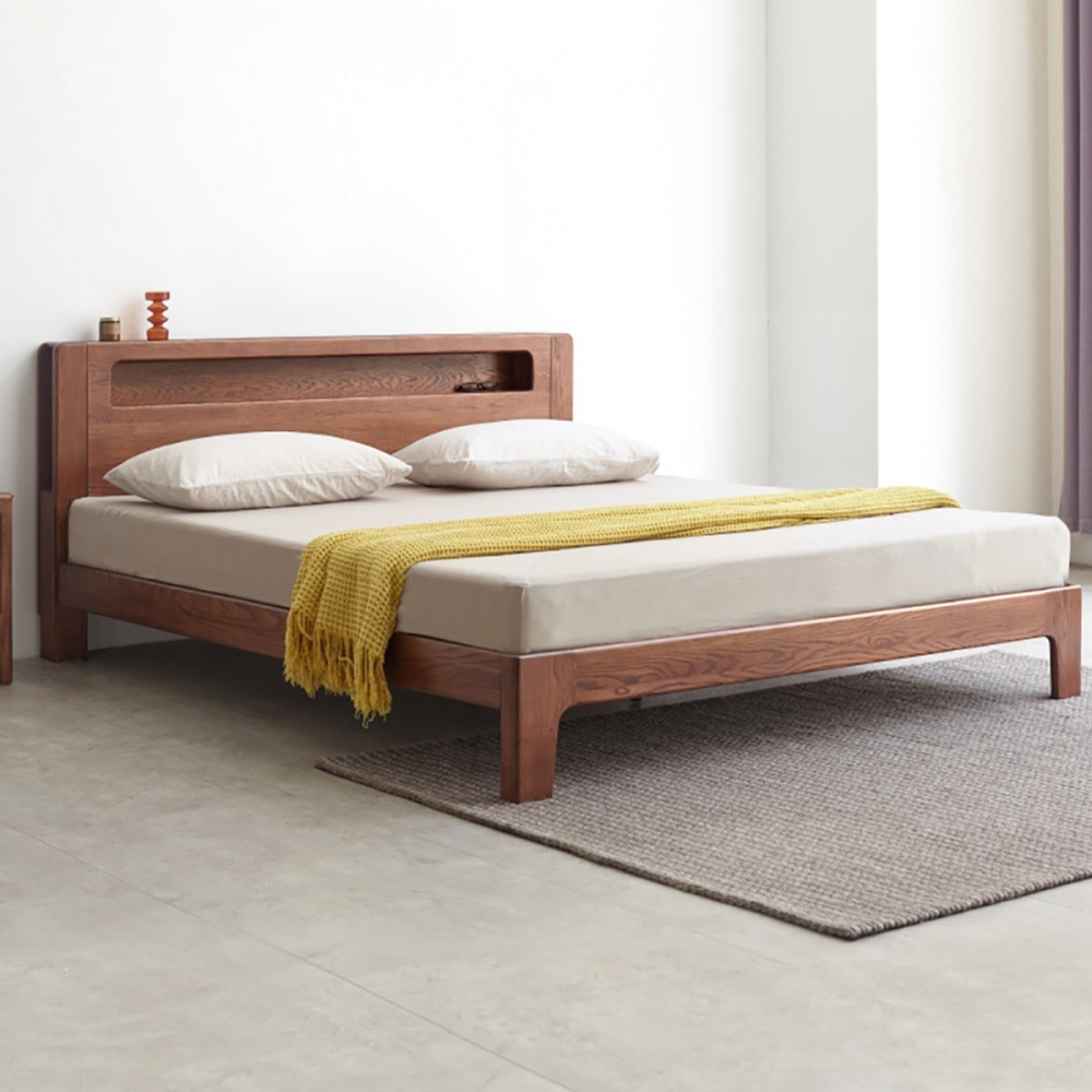 hoi!源氏木語西雅圖橡木多功能夜燈胡桃色雙人5尺150x190低床架 H90B13 (H014282861)