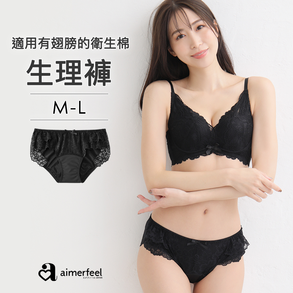 aimerfeel 側翼花邊三角生理褲-969029-BL