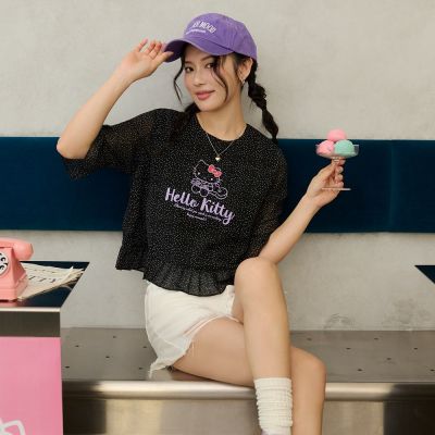 OB嚴選-KITTY 野餐系列.透膚雪紡點點荷葉邊短版上衣《KB1475-》 product image 1
