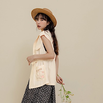 OB嚴選-KITTY 野餐系列.素色抽繩收腰長版軍裝背心 product image 1