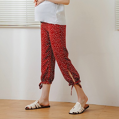 OB嚴選-雪紡菱點開衩綁帶造型可調節腰頭孕婦長褲 product image 1