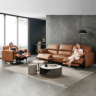 芝華仕頭等艙 頭層牛皮 雙人電動沙發組附USB 50266 駝色 (H014344154)