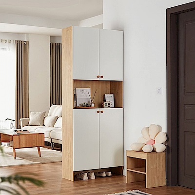林氏木業北歐風百搭四門玄關鞋櫃 LS187-原木+白色 (H014339861)