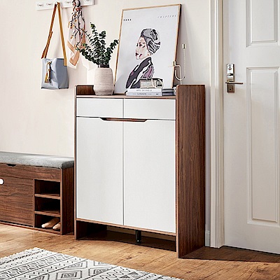 hoi! 林氏木業美式現代小戶型雙門對開0.8M鞋櫃 JS1N-胡桃木+白色 (H014303597)