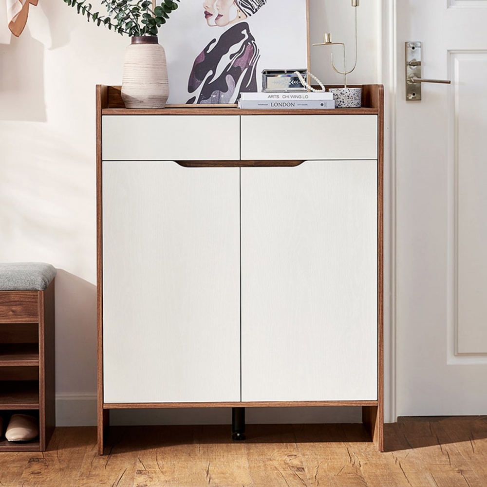 hoi! 林氏木業美式現代小戶型雙門對開0.8M鞋櫃 JS1N-胡桃木+白色 (H014303597) product image 1