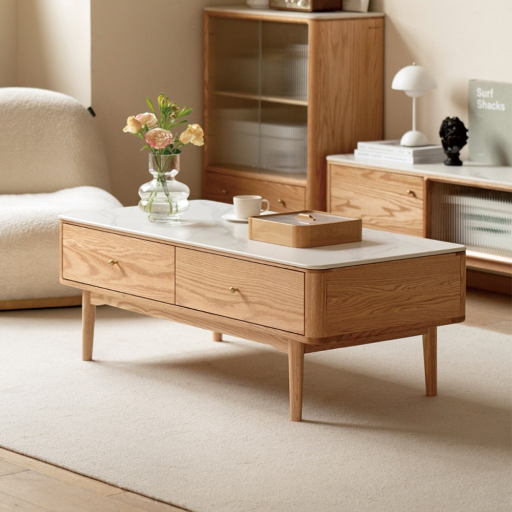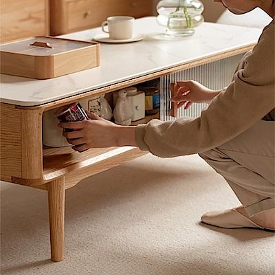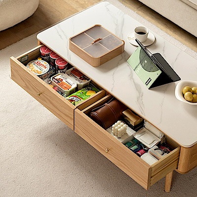 源氏木語光岩橡木原木色雙抽岩板茶几1M Y150J01 (H014369882)