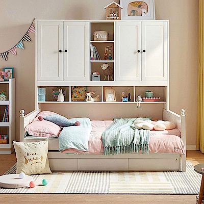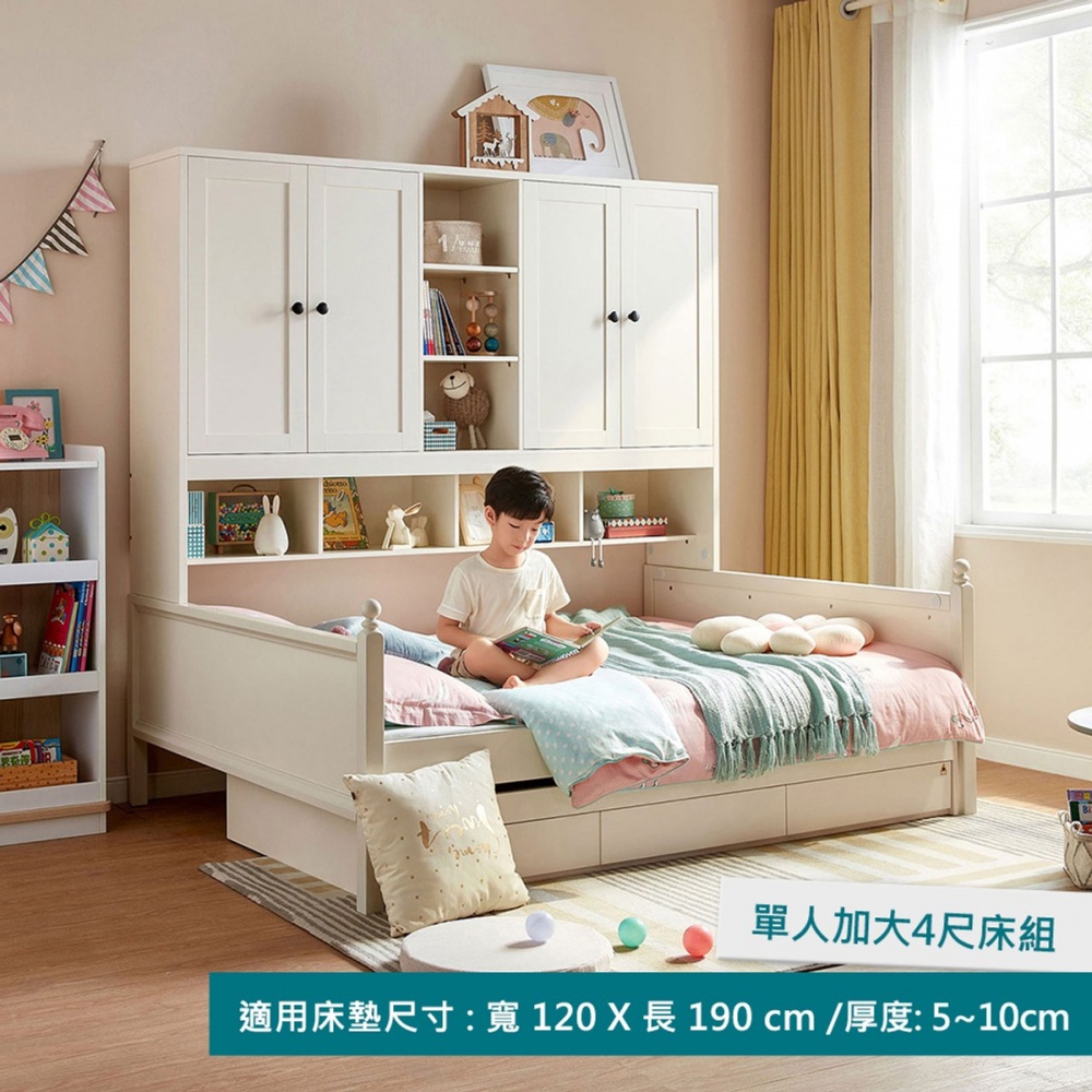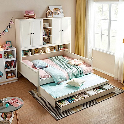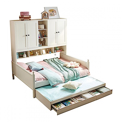 林氏木業北歐儲物櫃單人加大4尺兒童床120x190 LS236 (附拖床) (H014328140)