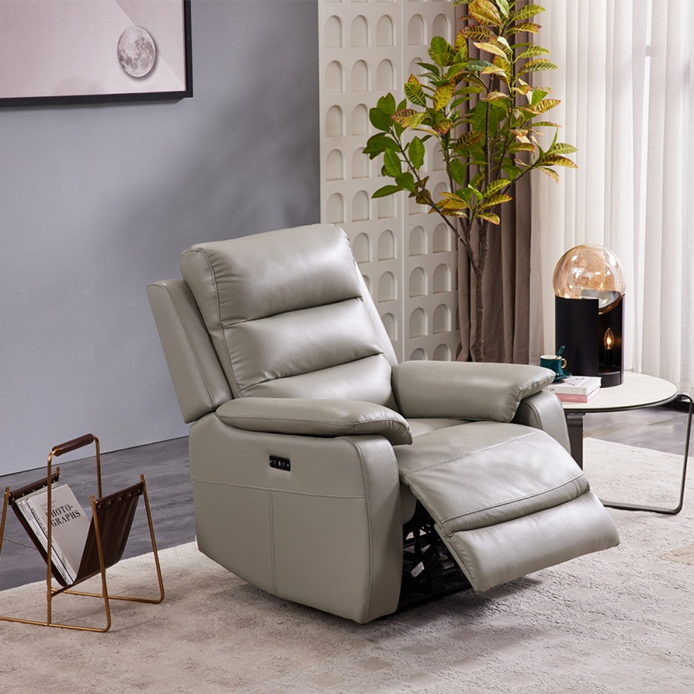 芝華仕頭等艙莫迪 頭層牛皮 單人電動沙發附USB 暮光灰 (H014368729) product image 1