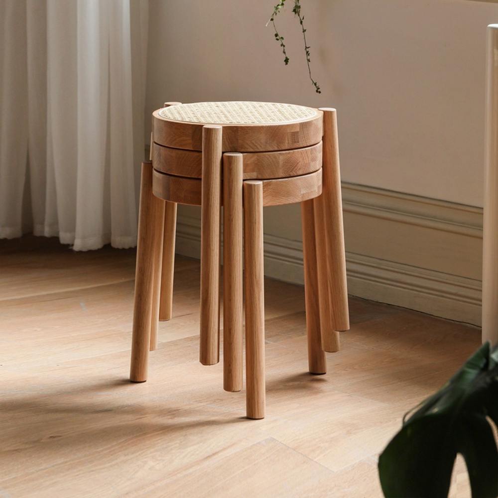 源氏木語布拉格橡木原木色可堆疊藤編圓凳 Y84T26 (H014374723) product image 1