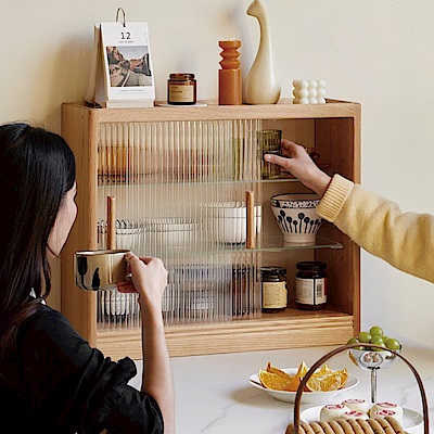 源氏木語柏林橡木原木色玻璃置物櫃 Y83Q02 (H014369467) product image 1