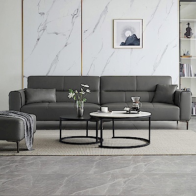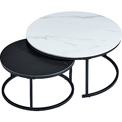 林氏木業北歐創意岩板圓形組合邊几 LS093J9 (白大黑小) (H014369245)