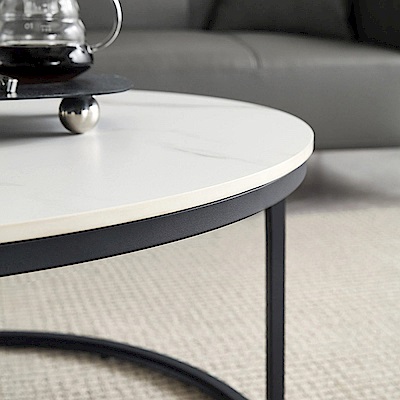 林氏木業北歐創意岩板圓形組合邊几 LS093J9 (白大黑小) (H014369245) product image 1