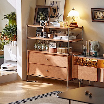林氏木業秋辰系列復古風開放抽屜層架 KQ1P (H014374175)