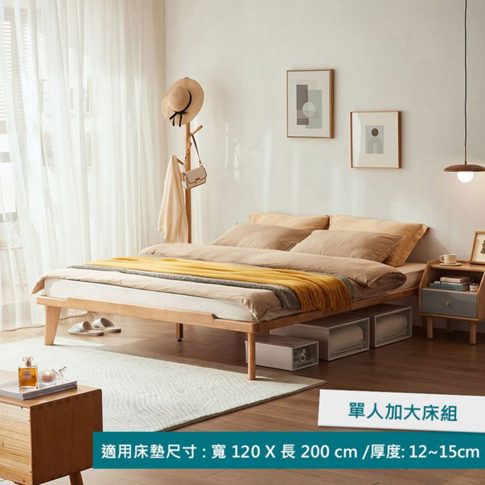 林氏木業北歐現代全實木無床頭單人加大120x200床架 PK3A (H014366177) product image 1