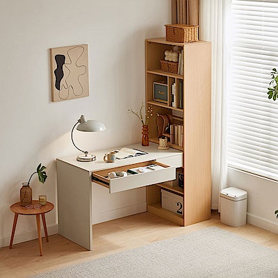 林氏木業簡約雙色附高書櫃書桌 OV2V-原木色 (H014365011)