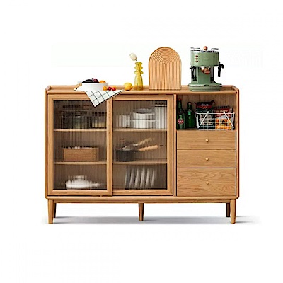 源氏木語布拉格橡木原木色玻璃滑門三抽餐櫃1.5M Y84Q09 (H014359479)