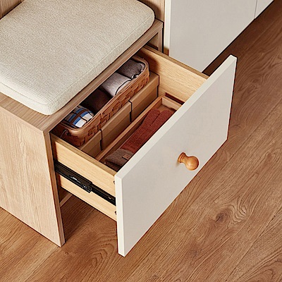 林氏木業北歐風百搭玄關穿鞋椅櫃 LS187-原木+白色 (H014339862)