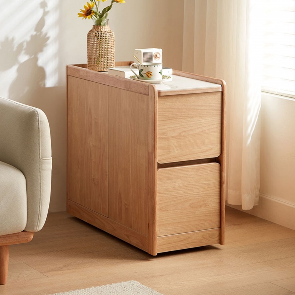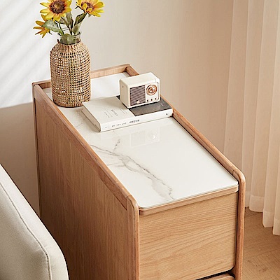 林氏木業北歐原木風角落雙抽屜可移動岩板邊几 OU1J (H014361653)