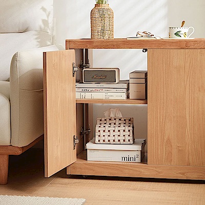 林氏木業北歐原木風角落雙抽屜可移動岩板邊几 OU1J (H014361653) product image 1