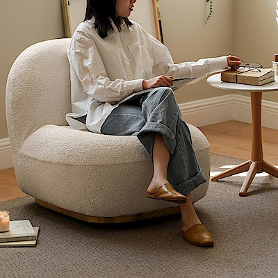源氏木語雪梨羔羊絨可拆洗旋轉單人沙發椅 S0547 雲棉白 (H014362882)