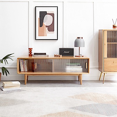 hoi! 源氏木語布拉格胡桃色橡木玻璃門雙抽電視櫃1.2M H84N06 (H014309471) product image 1