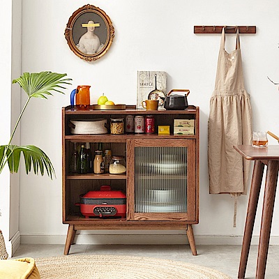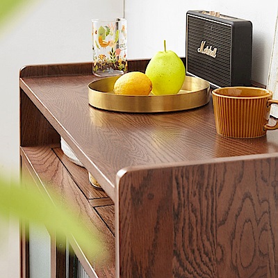 hoi! 源氏木語柏林胡桃色橡木0.86M雙門玻璃儲物櫃 H83Q01 (H014309513)